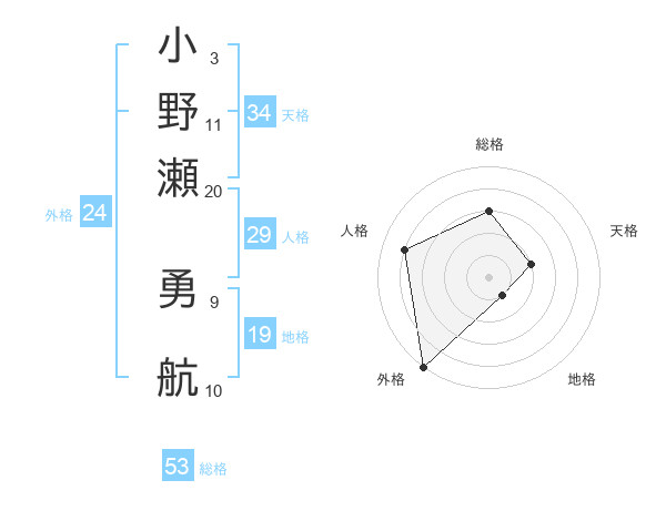 小野瀬 勇航さんを姓名の画数から五運を鑑定