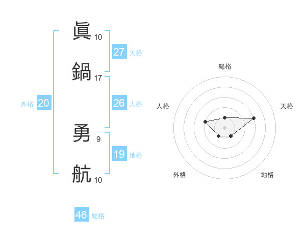 眞鍋 勇航さんを姓名の画数から五運を鑑定