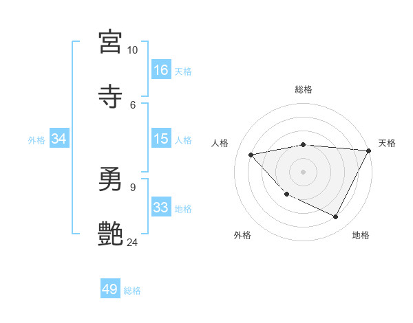宮寺 勇艶さんを姓名の画数から五運を鑑定