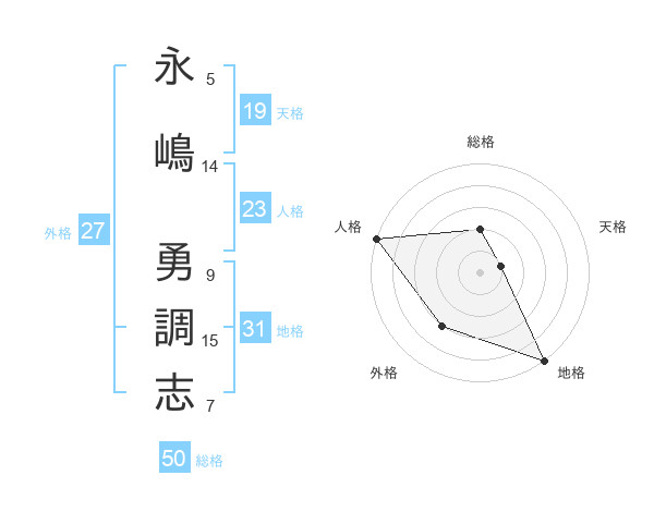 永嶋 勇調志さんを姓名の画数から五運を鑑定