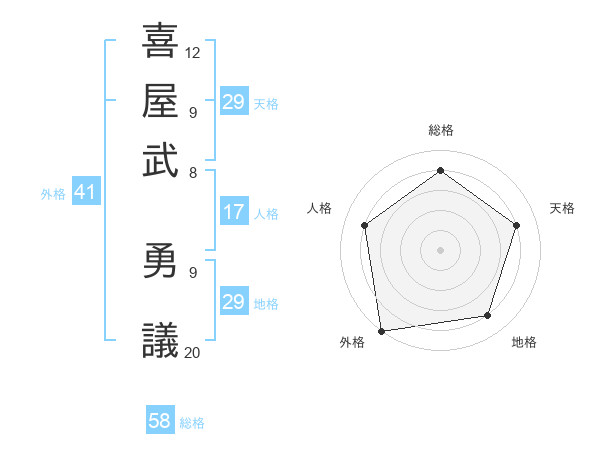 喜屋武 勇議さんを姓名の画数から五運を鑑定