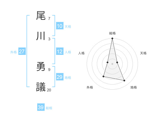 尾川 勇議さんの総格は39画の5点!