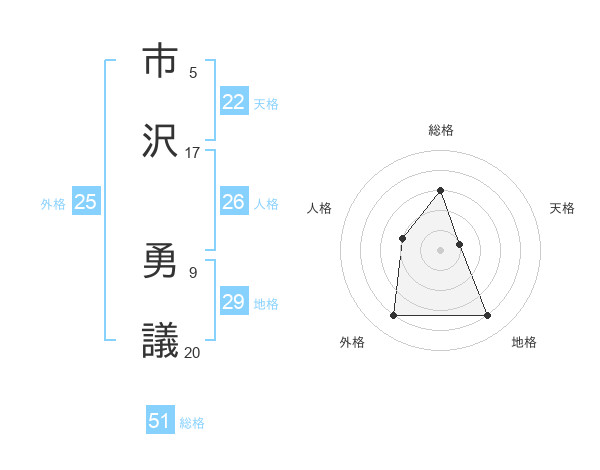 市沢 勇議さんの総格は51画の3点!