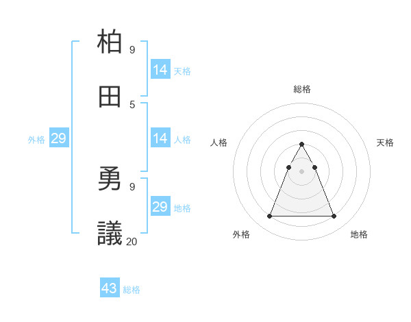 柏田 勇議さんの地格は29画の4点!
