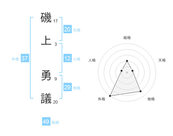磯上 勇議さんの総格は49画の2点!