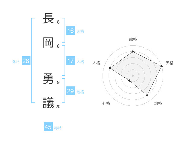 長岡 勇議さんの天格は16画の5点!