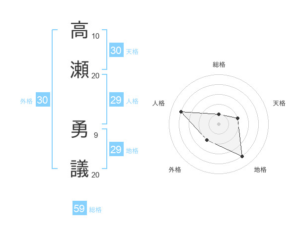 高瀬 勇議さんの総格は59画の1点!