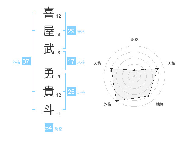 喜屋武 勇貴斗さんの天格は29画の4点!