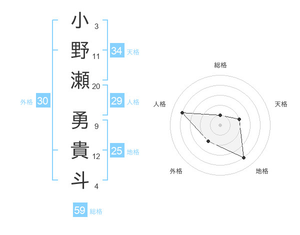 小野瀬 勇貴斗さんの地格は25画の4点!