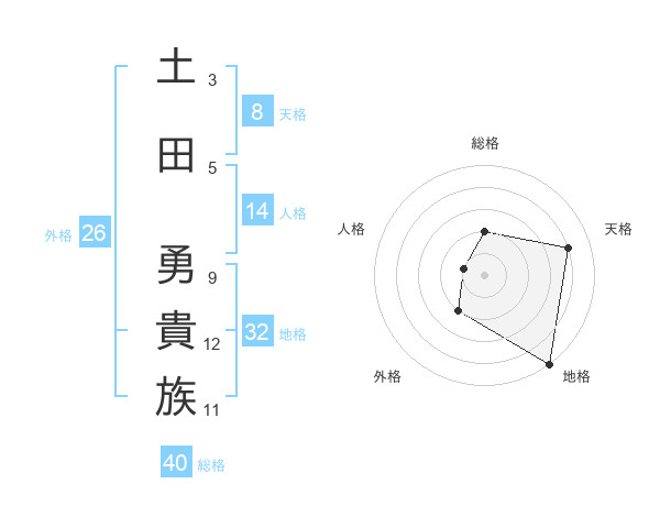 土田 勇貴族さんを姓名の画数から五運を鑑定