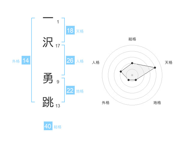 一沢 勇跳さんを姓名の画数から五運を鑑定