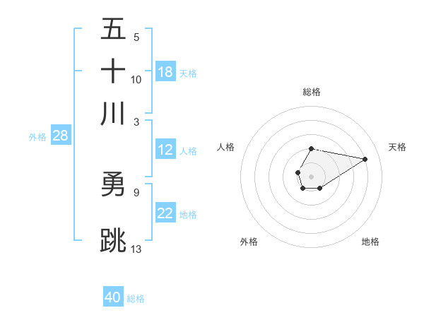 五十川 勇跳さんを姓名の画数から五運を鑑定