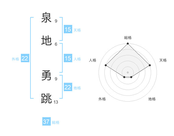 泉地 勇跳さんの総格は37画の5点!