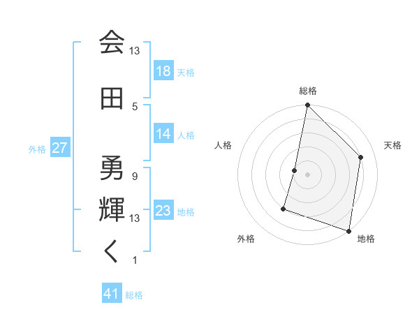 会田 勇輝くさんを姓名の画数から五運を鑑定