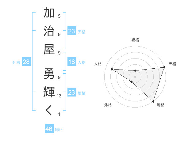 加治屋 勇輝くさんを姓名の画数から五運を鑑定