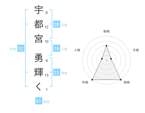 宇都宮 勇輝くさんを姓名の画数から五運を鑑定