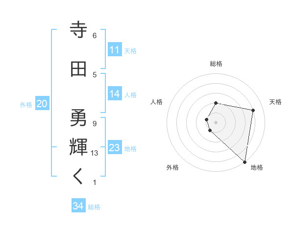 寺田 勇輝くさんを姓名の画数から五運を鑑定