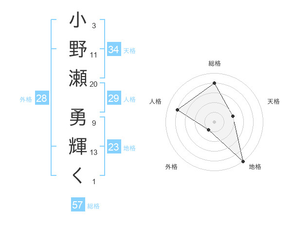 小野瀬 勇輝くさんを姓名の画数から五運を鑑定
