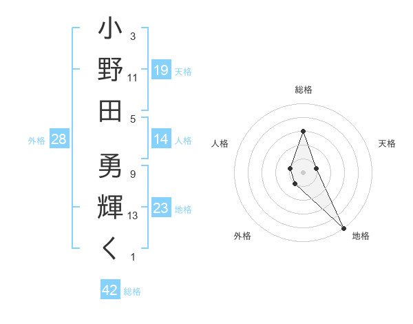 小野田 勇輝くさんを姓名の画数から五運を鑑定