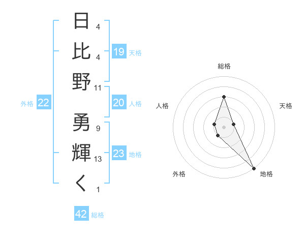 日比野 勇輝くさんを姓名の画数から五運を鑑定