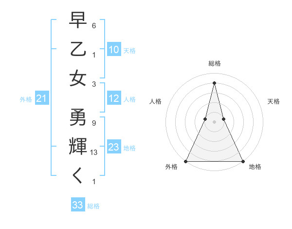 早乙女 勇輝くさんの総格は33画の4点!