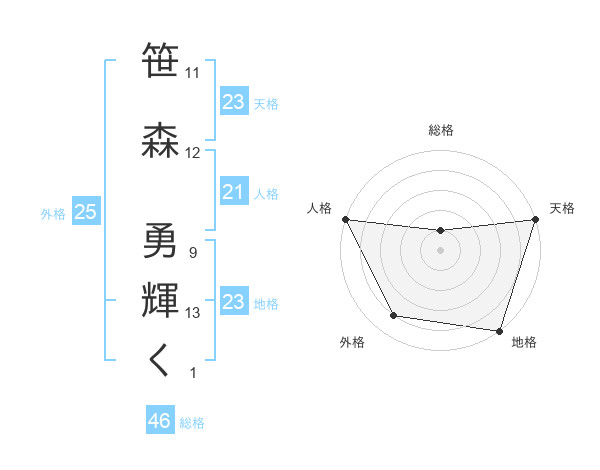 笹森 勇輝くさんを姓名の画数から五運を鑑定
