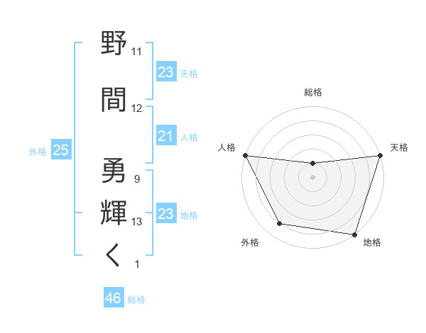 野間 勇輝くさんの天格は23画の5点!
