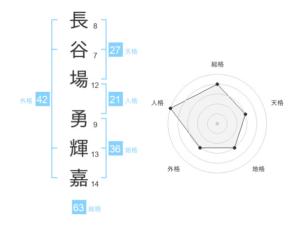 長谷場 勇輝嘉さんを姓名の画数から五運を鑑定