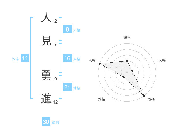 人見 勇進さんの総格は30画の2点