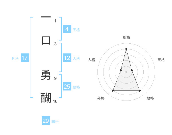 一口 勇醐さんの総格は29画の4点!