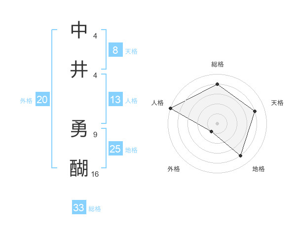 中井 勇醐さんを姓名の画数から五運を鑑定