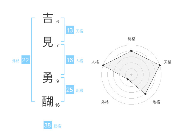 吉見 勇醐さんの天格は13画の5点!
