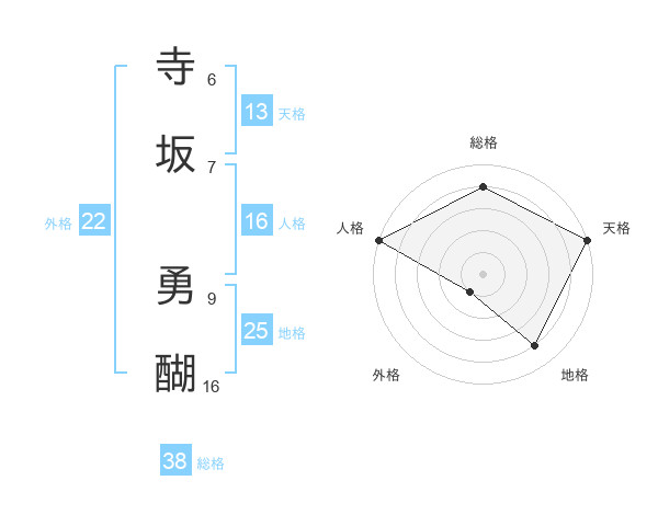 寺坂 勇醐さんを姓名の画数から五運を鑑定