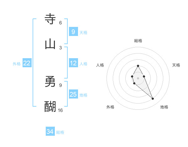 寺山 勇醐さんの地格は25画の4点!