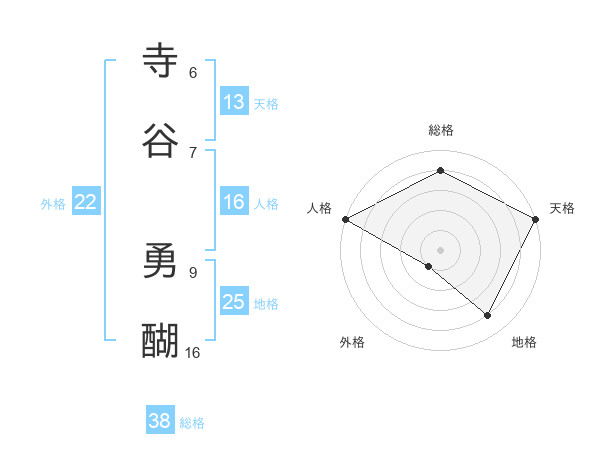 寺谷 勇醐さんを姓名の画数から五運を鑑定