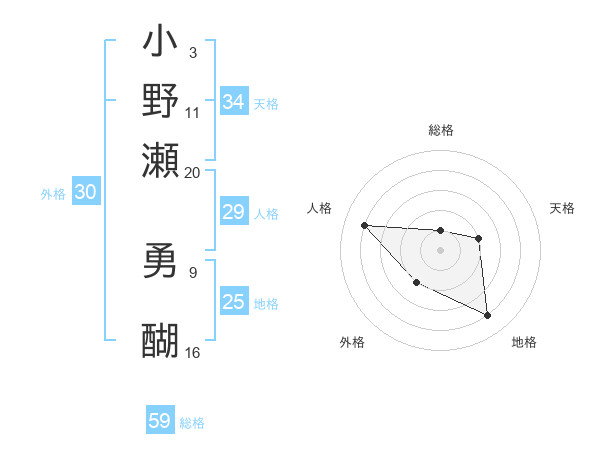 小野瀬 勇醐さんを姓名の画数から五運を鑑定