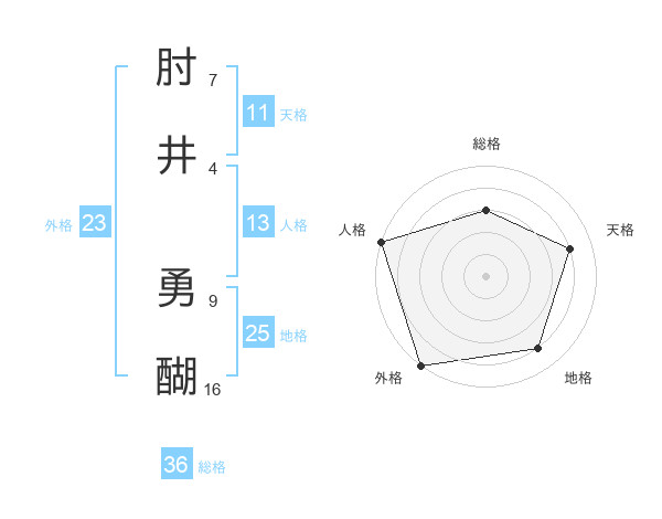 肘井 勇醐さんを姓名の画数から五運を鑑定