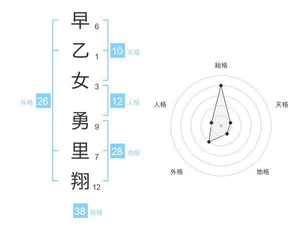 早乙女 勇里翔さんの総格は38画の4点!