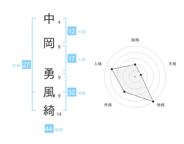中岡 勇風綺さんを姓名の画数から五運を鑑定