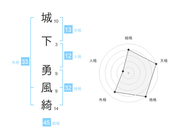 城下 勇風綺さんの総格は45画の4点!