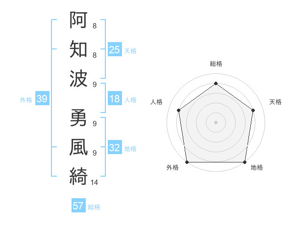 阿知波 勇風綺さんを姓名の画数から五運を鑑定
