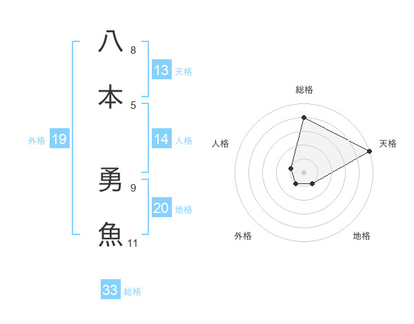 八本 勇魚さんを姓名の画数から五運を鑑定