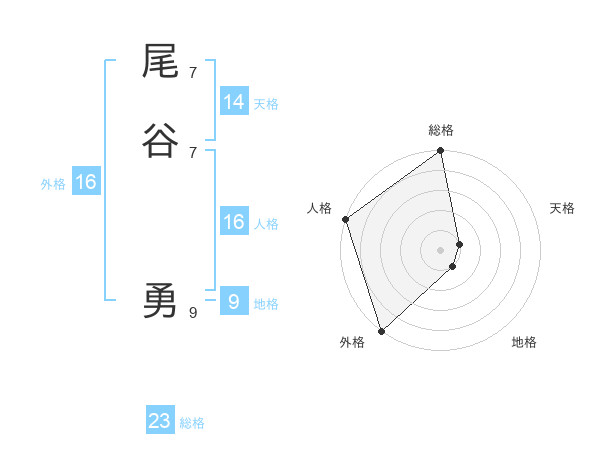 尾谷 勇さんを姓名の画数から五運を鑑定