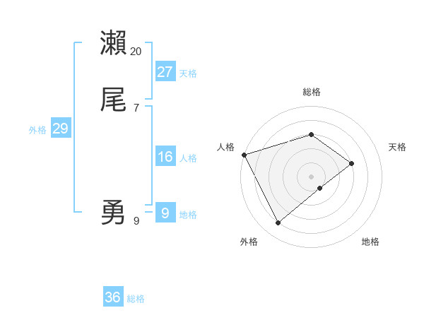 瀨尾 勇さんを姓名の画数から五運を鑑定