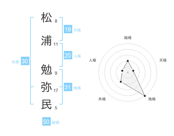 松浦 勉弥民さんを姓名の画数から五運を鑑定