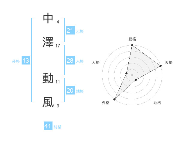 中澤 動風さんの地格は20画の1点!