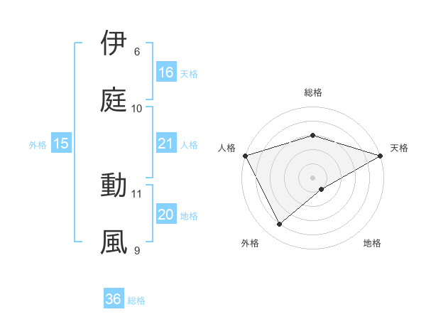 伊庭 動風さんを姓名の画数から五運を鑑定