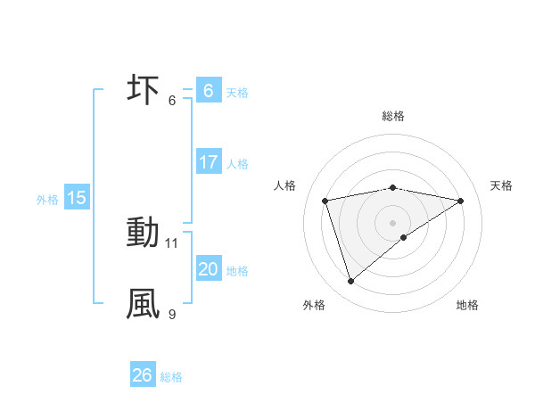 圷 動風さんの総格は26画の2点!