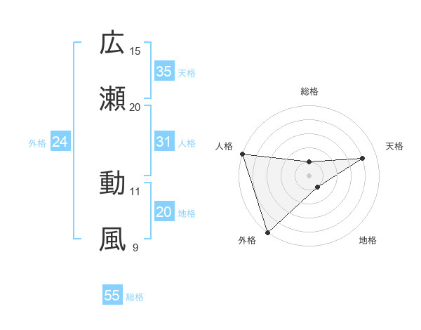 広瀬 動風さんを姓名の画数から五運を鑑定