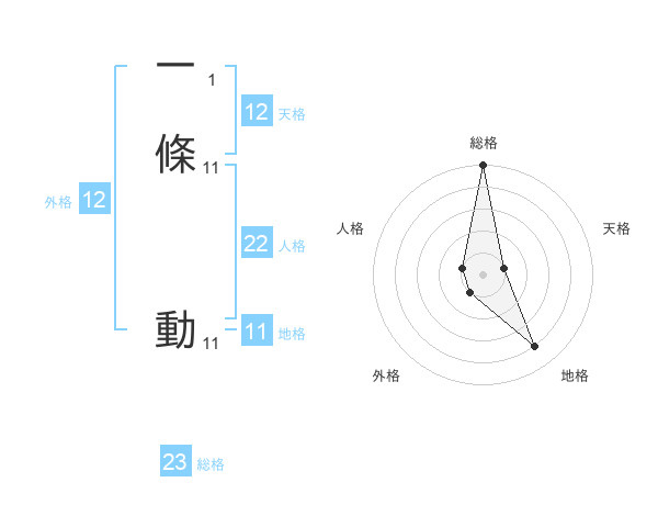 一條 動さんの総格は23画の5点!